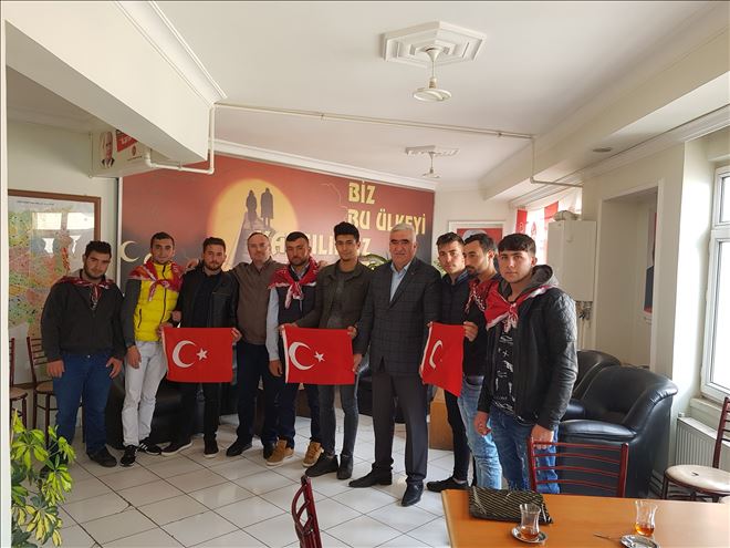 Askere gidecek Asker adayları ile bir süre hasbıhal eden Kaşlı kendilerine Türk bayrağı hediye etti.MHP İl Başkanı ve Yönetim kurulu üyeleri Asker adayları ile helalleşerek dualarla görev yerlerine uğurladılar.
