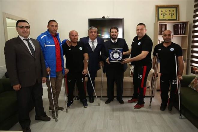 Belediye Başkanı Haluk Şahin Yazgı, Aksaray Belediyesi tekerlekli sandalye Basketbol takımı kulüp yöneticisi Cüneyt Avan, Engelliler Derneği Aksaray Şube Başkanı Bekir Kaya, takım kaptanı Dursun Duru ve yönetim kurulu üyeleriyle bir araya geldi.